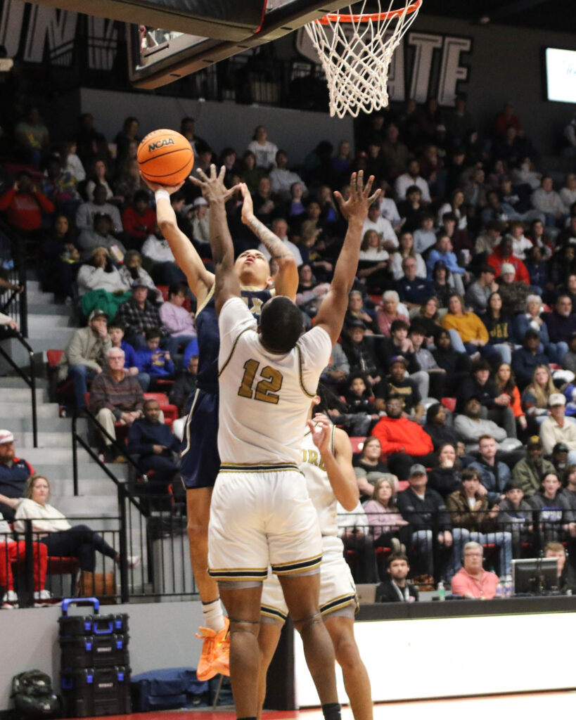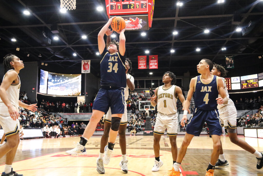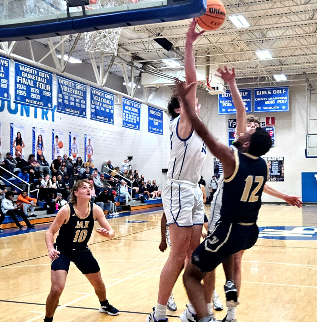 Cover photo: Jacksonville’s Ben Pridgen goes up for two as Oxford’s Jaylen Alexander (left), Caleb Sanders (1) and Jacksonville’s Devin Barksdale (4) look on during Friday’s Calhoun County boys’ championship game in Pete Mathews Coliseum.