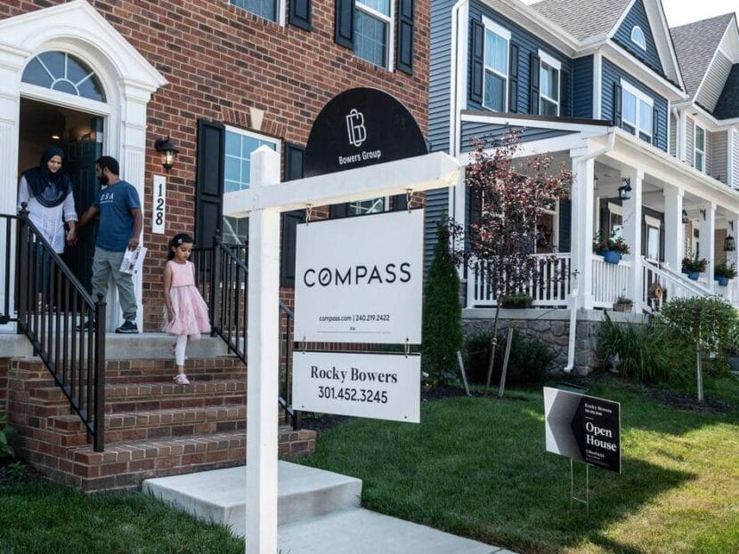 Prospective home buyers leave a property for sale during an Open House in a neighborhood in Clarksburg, Md. on September 3, 2023. The new real estate commission structure could mean buyers have to pay more out-of-pocket fees starting in July. (Roberto Schmidt/AFP via Getty Images)