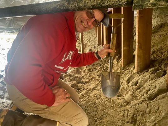 So Pagenkopf has been rebuilding the land by hand. He crawls under the house each day with a small shovel.