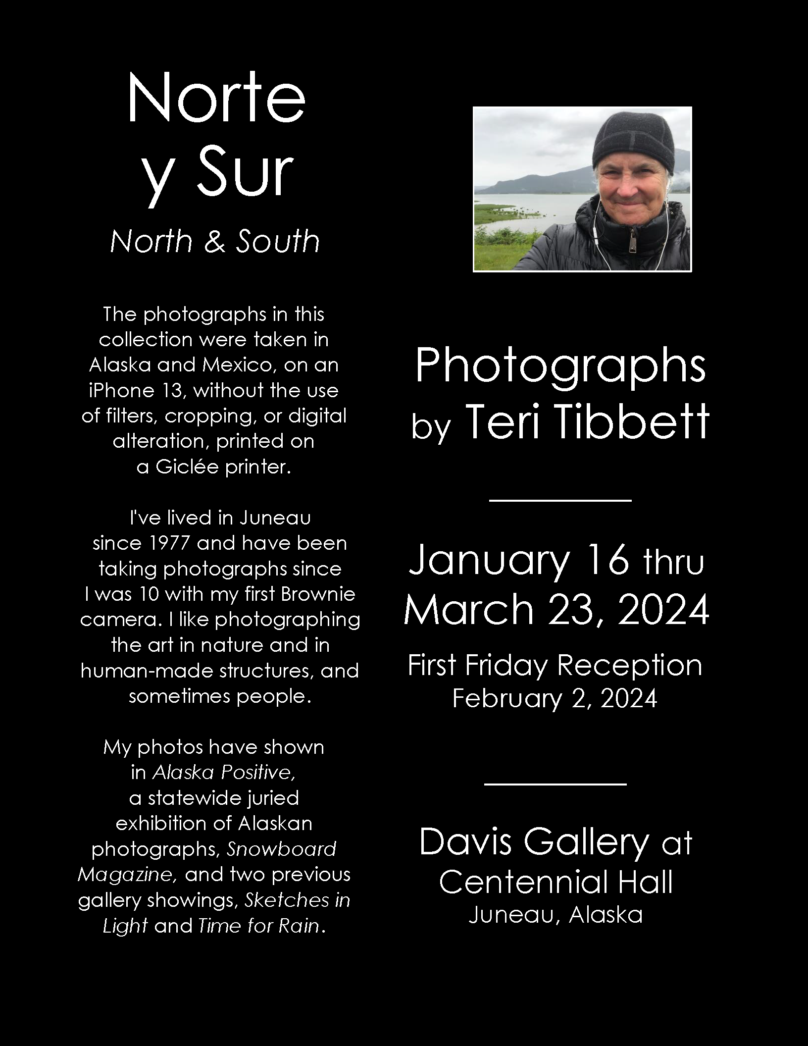 - Norte y Sur (North & South), a gallery showing of photographs by Juneau resident Teri Tibbett