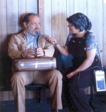 Nelllie Moore interviews the late Gov. Jay Hammond at the Kotzebue airport in 1976. (Photo courtesy of the Moore family)