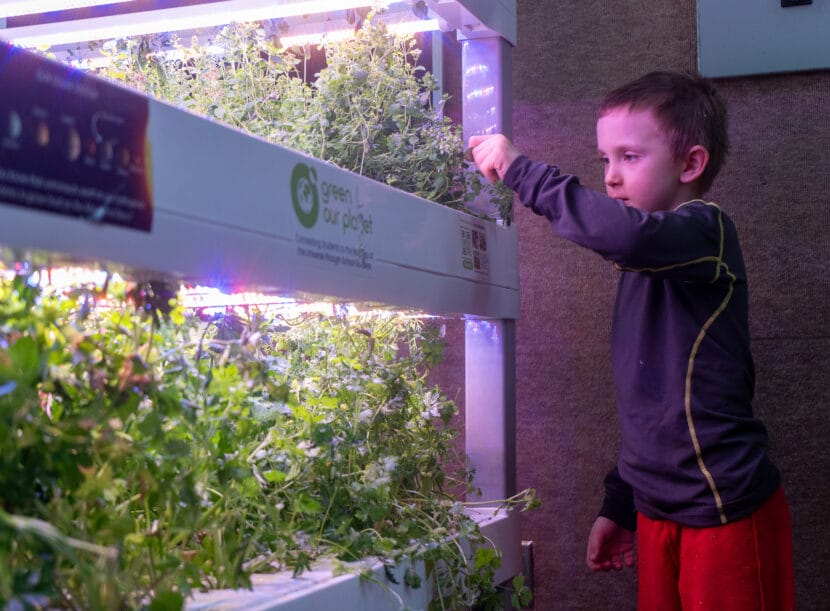 Recently, they harvested basil from the hydroponic garden to make garlic basil pesto.