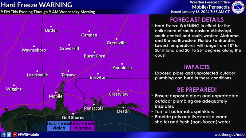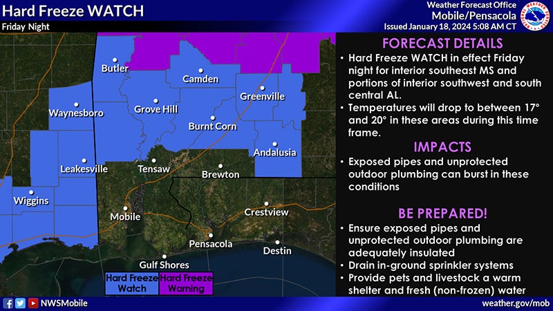 The Covington County Emergency Management Agency has announced the potential for another hard freeze with the possibility of low temperatures at or below 20 degrees…